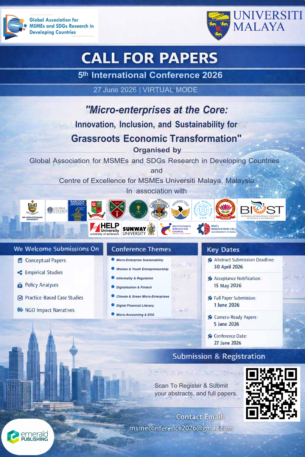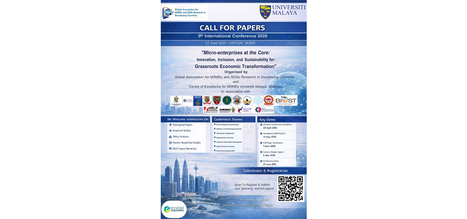 - To promote collaboration in edited books, book chapters, seminar papers, journal articles, and other forms of publication related to MSMEs or SDGs.